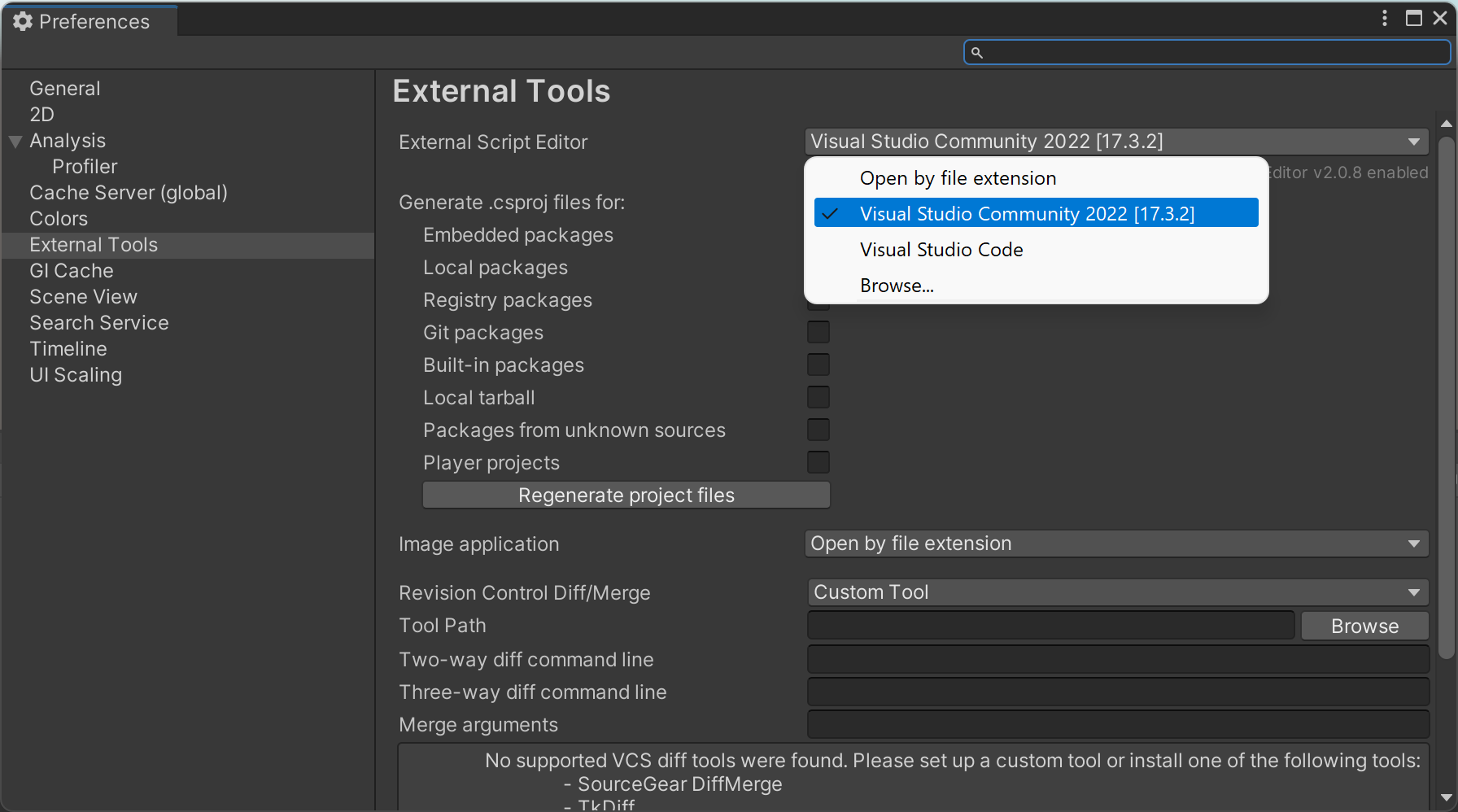 1. 在VS中检查是否安装了Unity对应的开发包