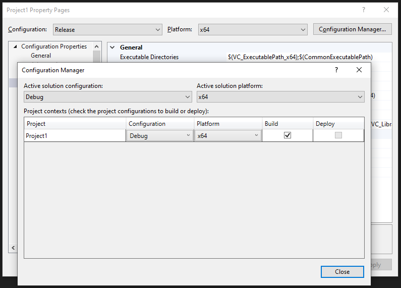 VS中有不同的构建配置,比如默认的Debug和Release。也有不同的平台配置,比如x64和x86。