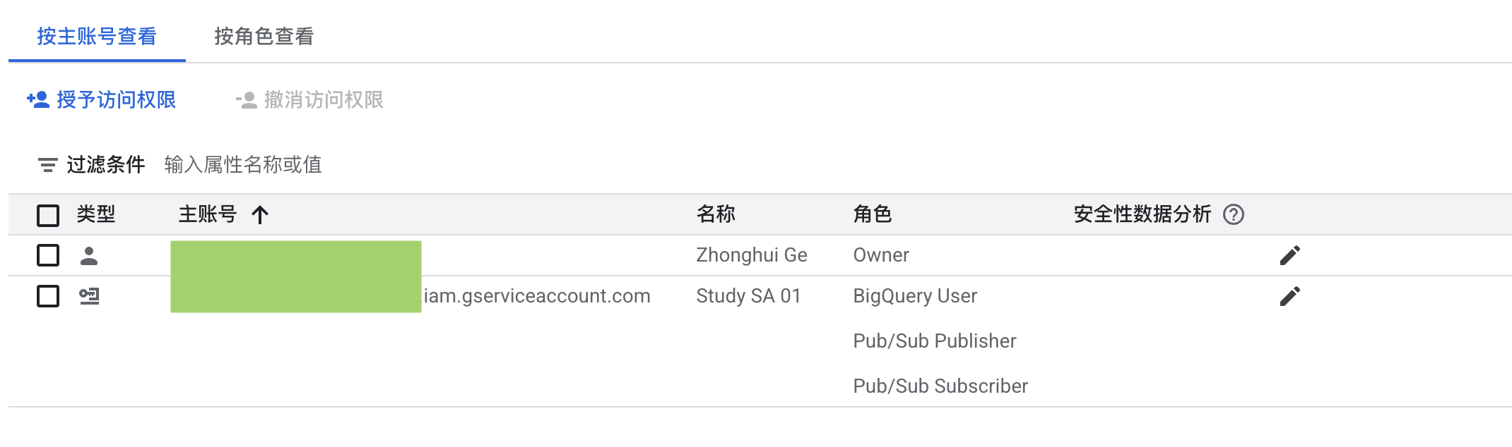 # 服务账号(SA)属于某个项目里创建的资源(邮箱里会带项目 ID)